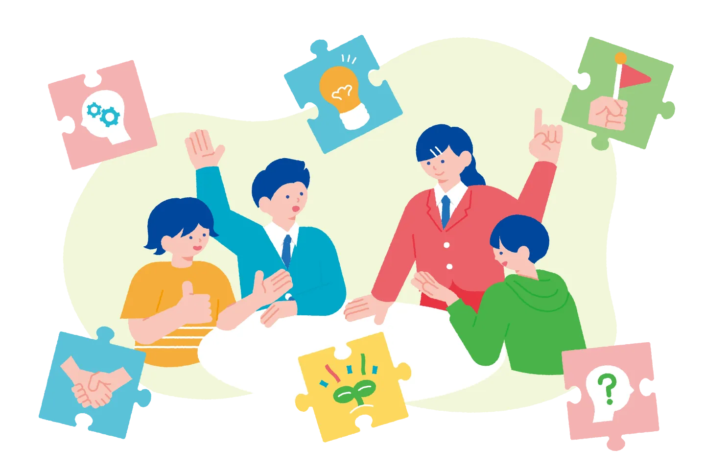 多くの大人が抱える「論理的な説明が苦手」「会議で発言できない」といった悩み。その根本原因である「考え、対話し、決める」経験の不足を解消するために、本プログラムは開発されました。